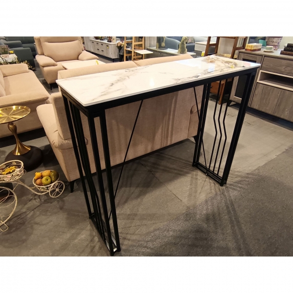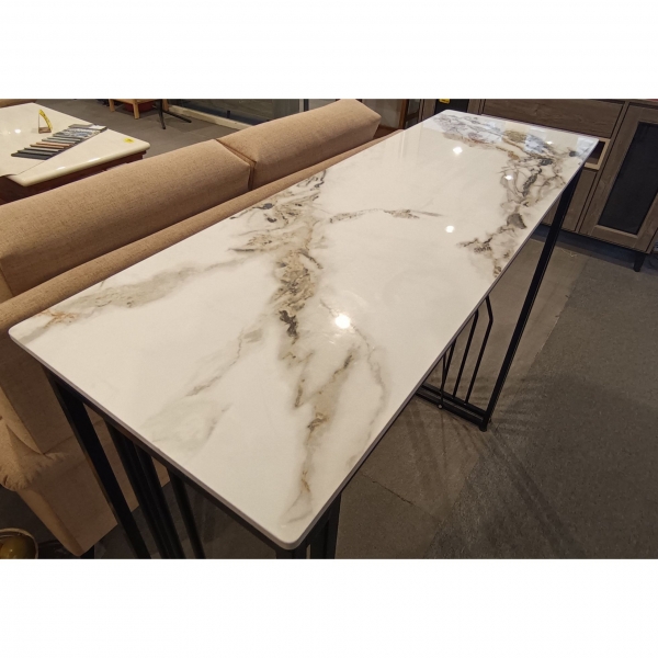 霓影|亮面岩板吧台桌|防鏽黑鐵腳|120*40*105 cm
